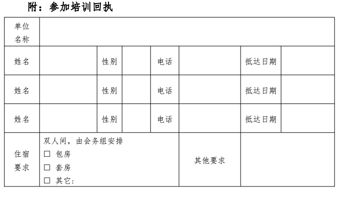 培訓(xùn)報(bào)名截止日期為2017年7月7日,請(qǐng)?jiān)敿?xì)填寫附件:《培訓(xùn)報(bào)名回執(zhí)表》,發(fā)至郵箱